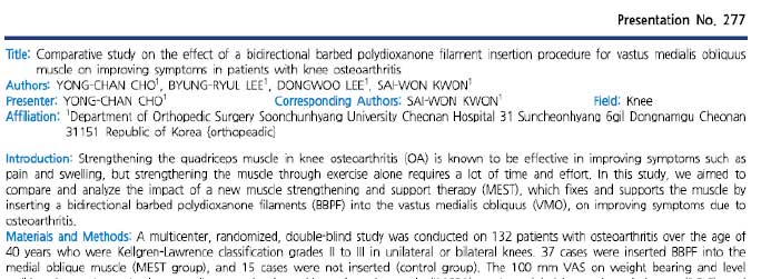 - 대한 슬관절 춘계 학회