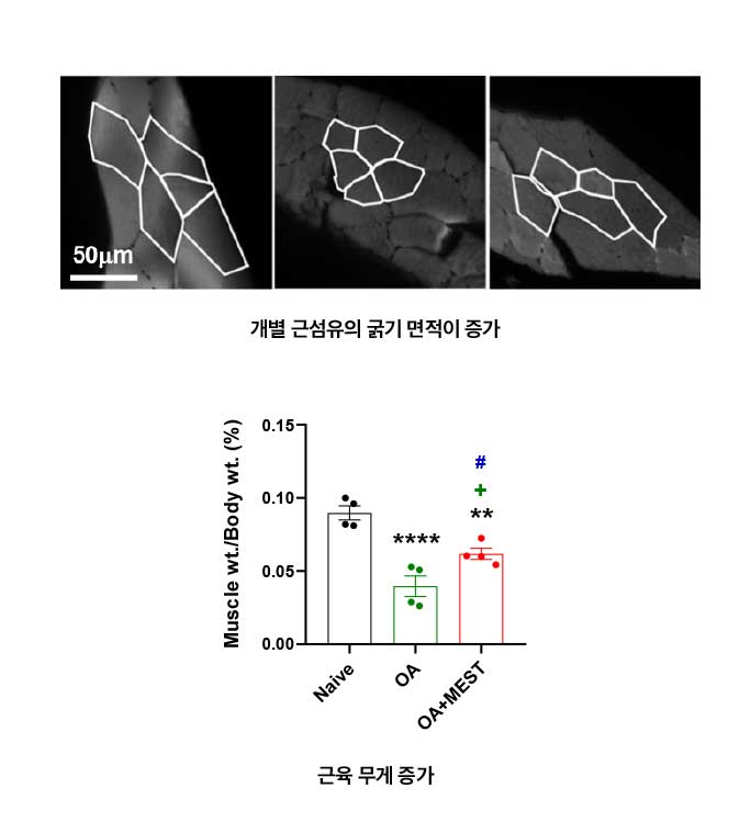 - 근육 재생 마커인 IGF-1, TGF-β1 증가